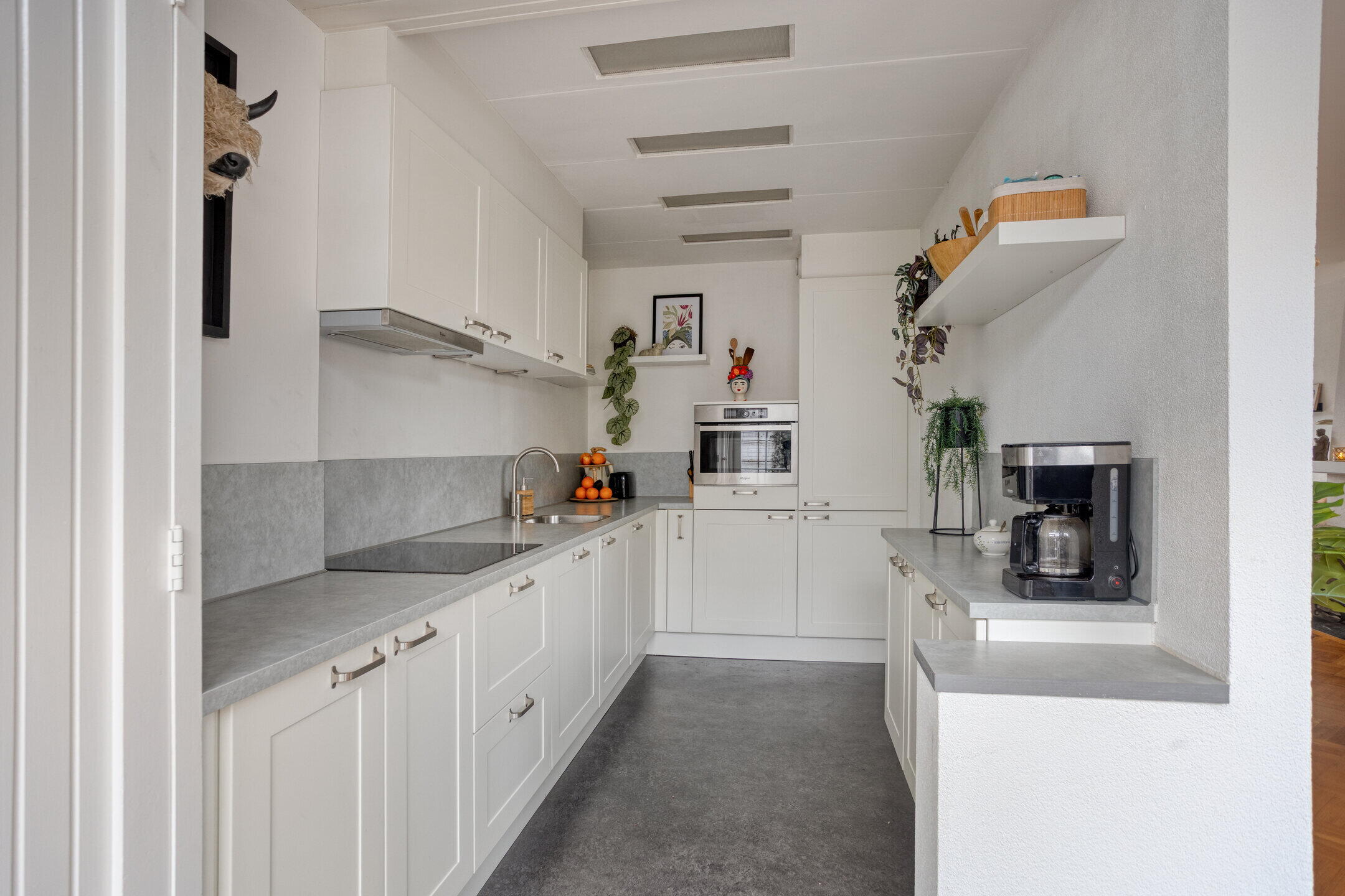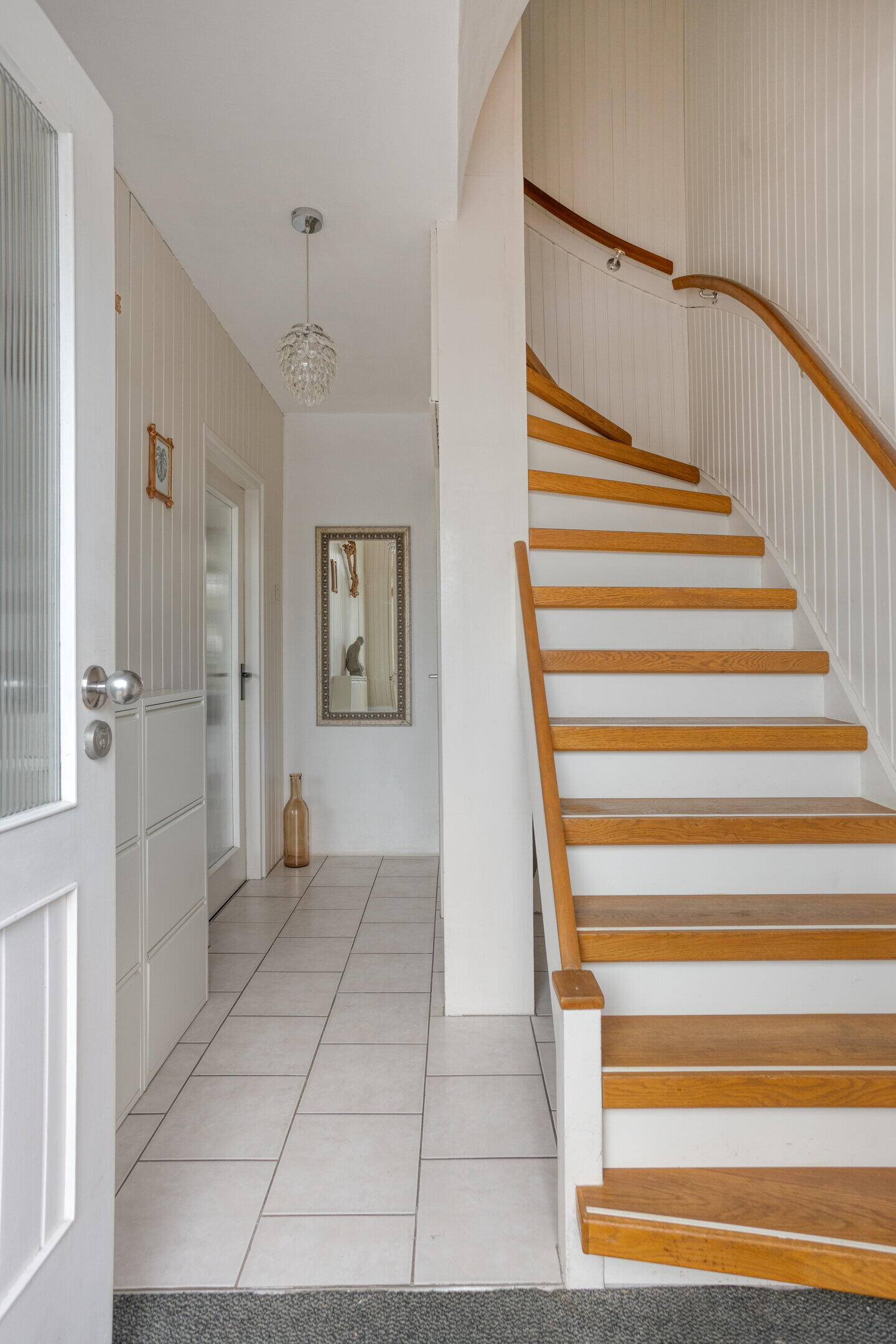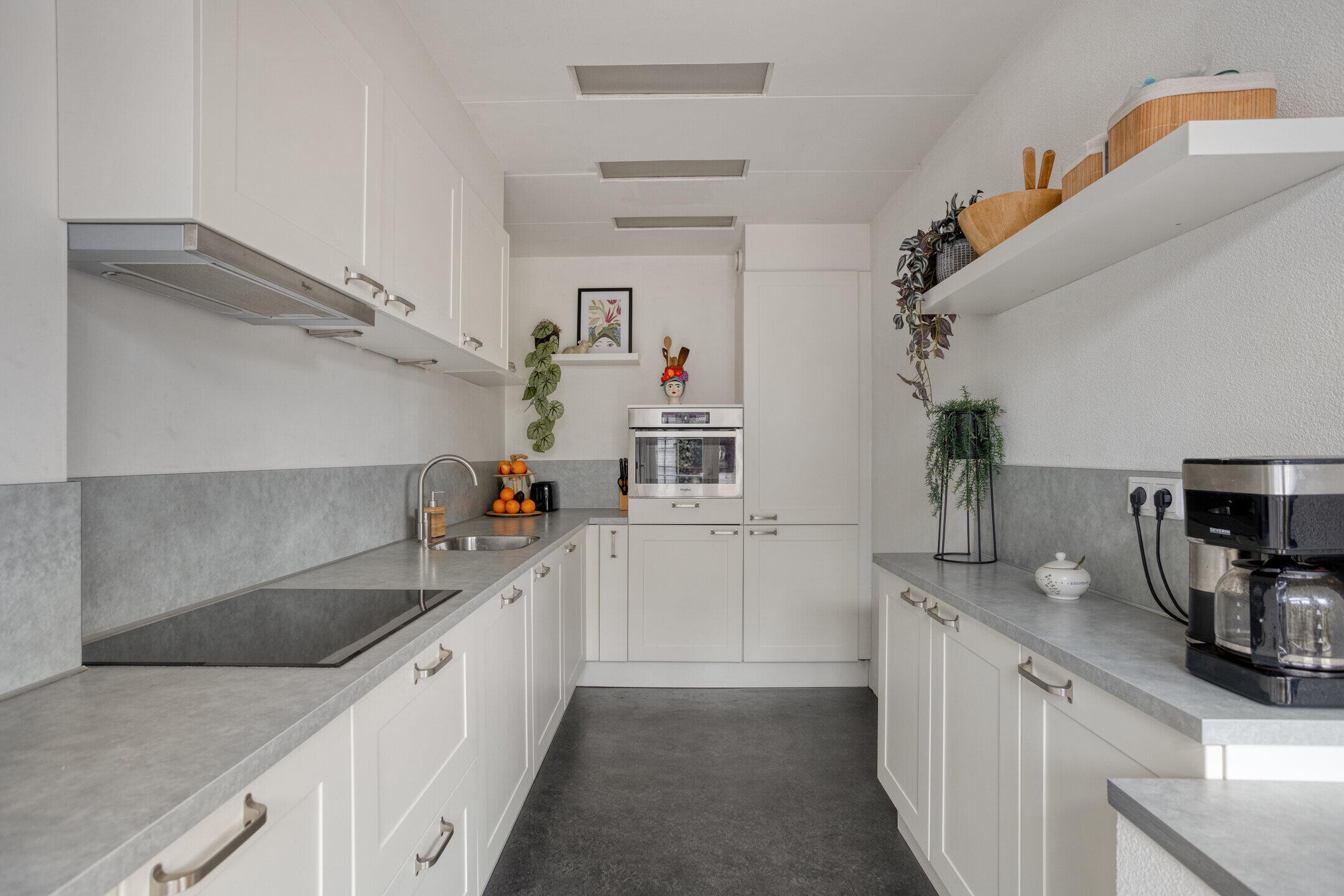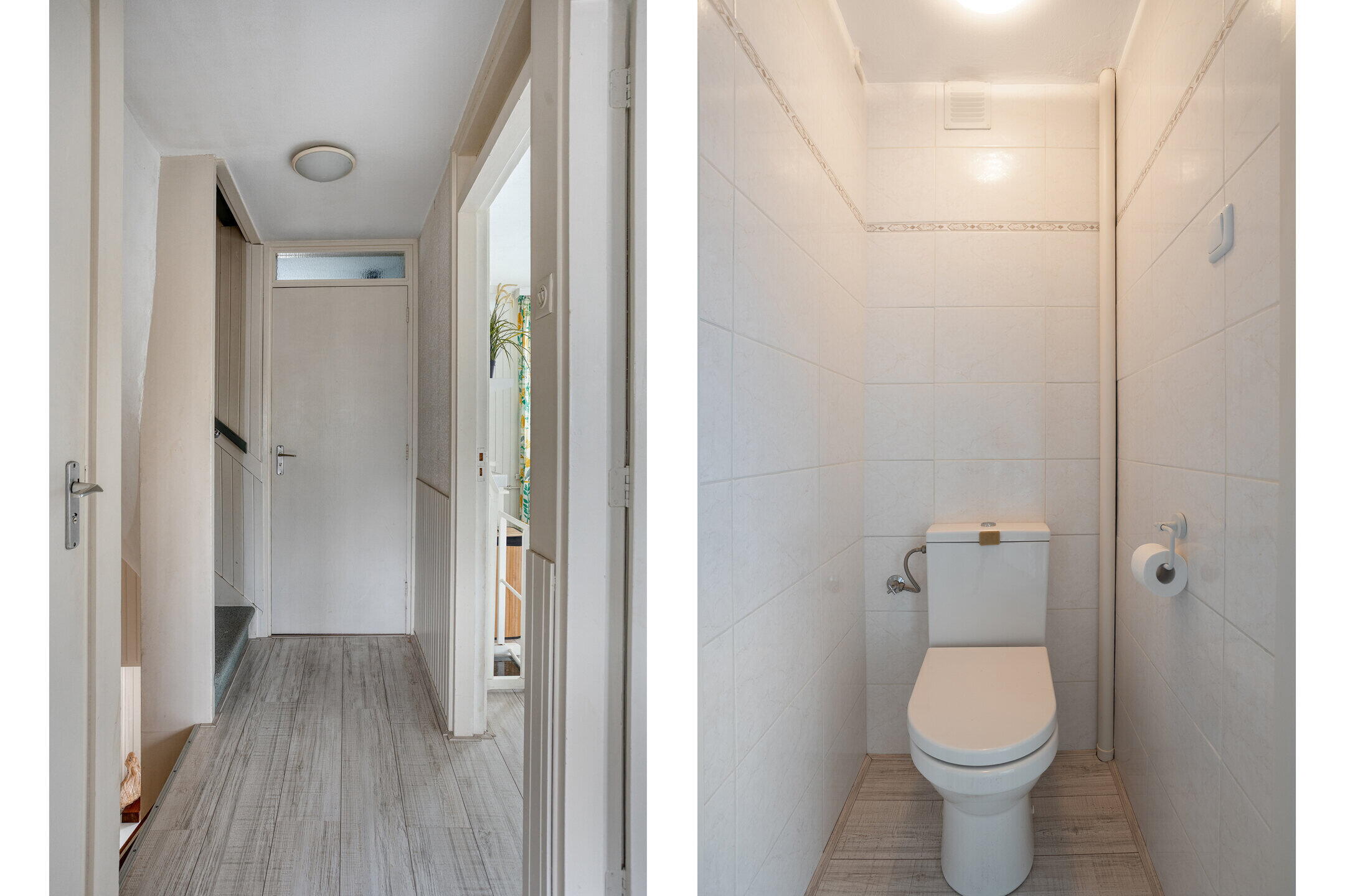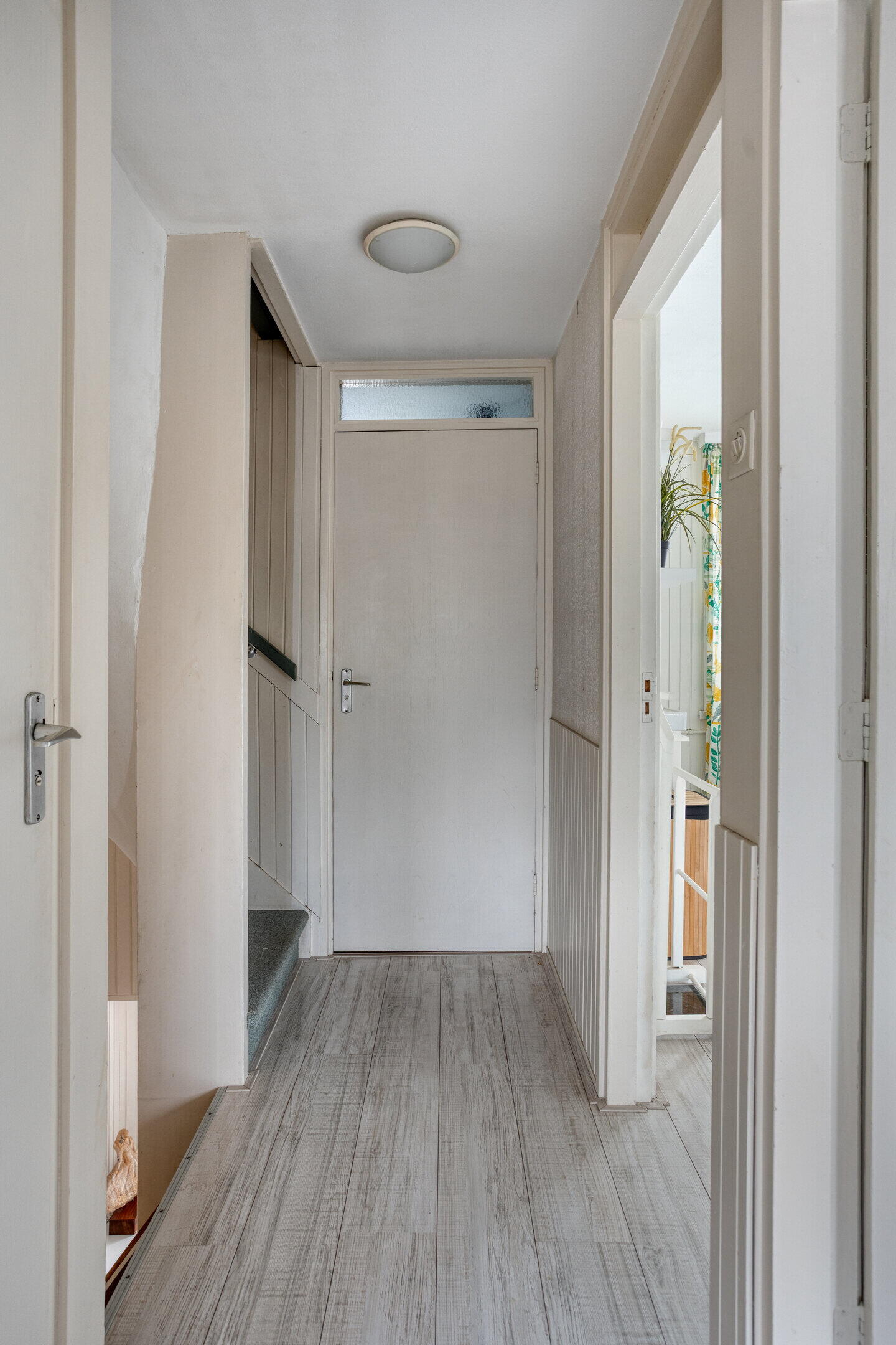 Entree met hal, toiletruimte en trapopgang. Vanuit de hal toegang tot de lichte, open leefruimte met woonkamer en eethoek. De halfopen keuken is praktisch ingericht en grenst aan de eethoek. Grote raampartijen zorgen voor veel daglicht en een prettige woonbeleving.